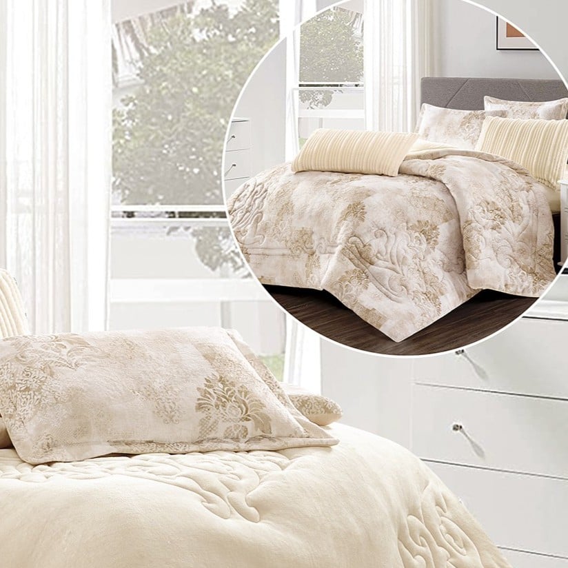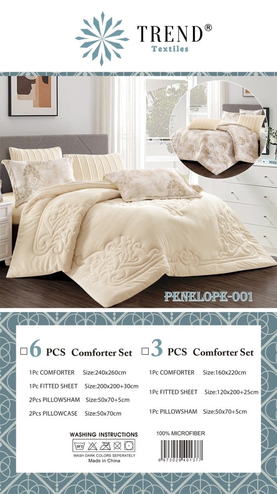 ديزاير مفرش شتوي نفرين 6 قطع بيج فاتح PENELOPE يتمتع بلون هادئ للغاية ومناسب لكل الأذواق المختلفة، كما أن المفرش مصنوع بجودة عالية تجعله مفرش لا يتلف مع الإستخدام المتكرر، ويتوفر في متجر ترند بأفضل جودة وأقل سعر.