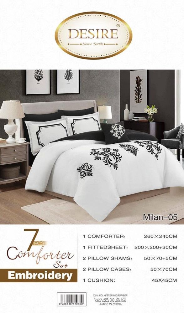 طقم لحاف اسود و ابيض من متجر مفارش ترند يكمل لك ديكور غرفتك، فهو بمثابة لوحة فنية رائعة من حيث الشكل والتصميمات، علاوة على تصنيعه من خامات عالية الجودة تدوم معك لفترات طويلة مع الاهتمام الجيد به من تشكيلة متجر مفارش ترند