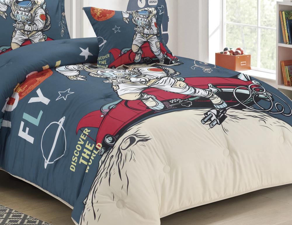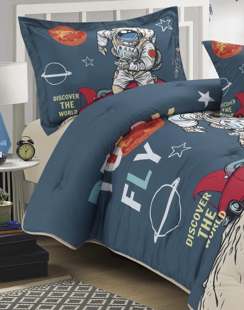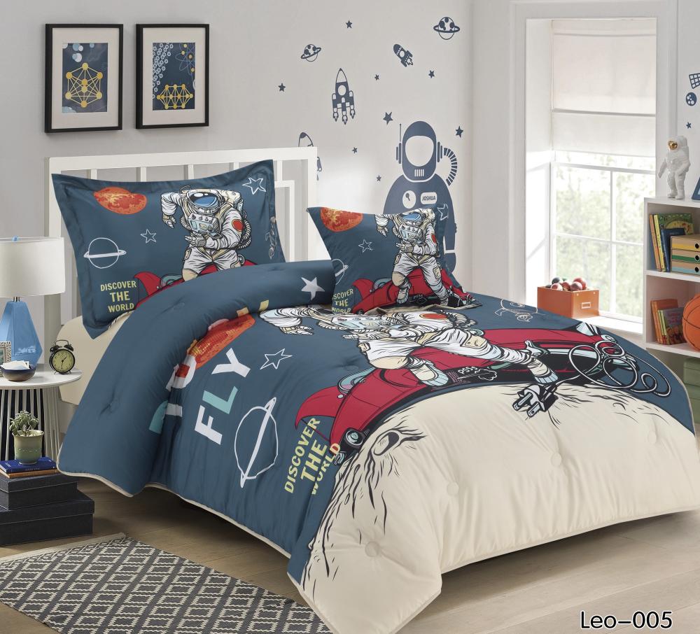 اضيفي لمسة من الألوان الزاهية لغرفة طفلك الصغير مع مفرش Leo-005 بملمسه الناعم لينعم أطفالنا بنوم هادئ.