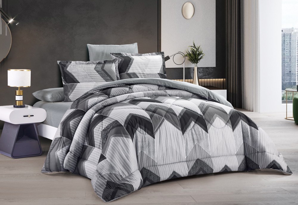 عدد القطع: 4 قطع ( لحاف/ شرشف مطاط/ 2 غطاء وسادة كبيرة).