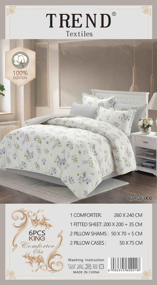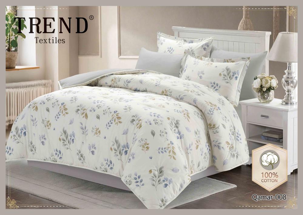 اجعل غرفة نومك مريحة ودافئة مع هذا الطقم الفاخر والمتكامل من مجموعة Qamar و الذي يتميز بكونه مصنوعاً من القطن الطبيعي 100% و بجودة رائعة. كذلك تصميمه الجذاب الذي يضيف لغرفتك لمسة ناعمة وهادئة تمنحك نوماً مريحاً أثناء الليل.