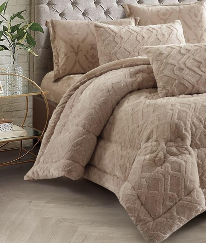 أضف الدفء والراحة لغرفة نومك مع مفرش شتوي نفرين 6 قطع بني فاتح يتمتع هذا المفرش بلون هادئ للغاية ومناسب لكل الأذواق المختلفة كما ان المفرش صنع بوجه مخمل سميك فاخر وناعم الملمس وبطانة من الفرو تمنحك شعور الدفء والنوم العميق في الليلي الشتويه وصنع كذلك بجودة عالية تجعله مفرش لا يتلف مع الإستخدام المتكرر، ويتوفر في متجر ترند بأفضل جودة وأقل سعر.